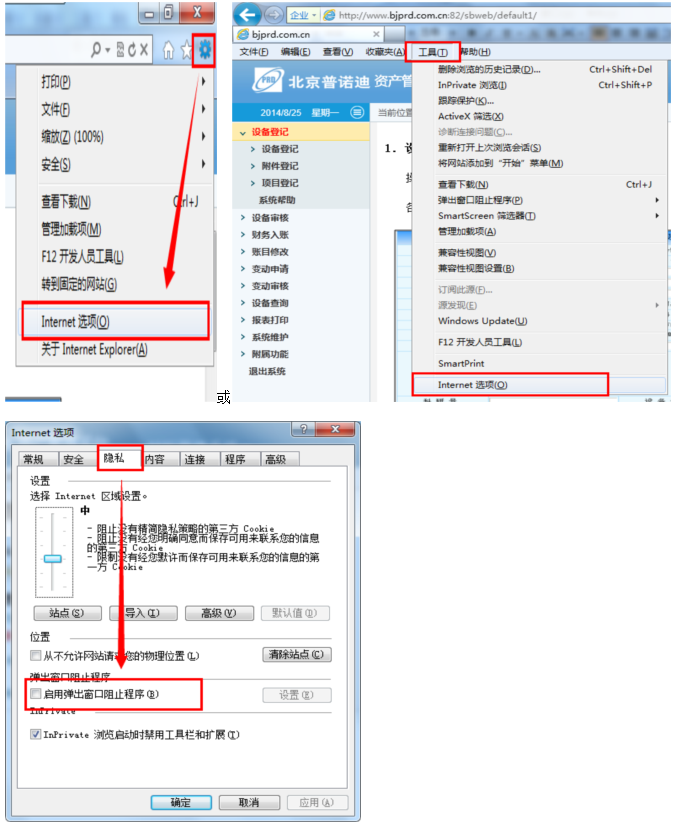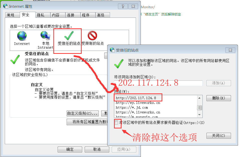 1、把资产系统IP 202.117.124.8 加入Internet选项里的信任列表 有图