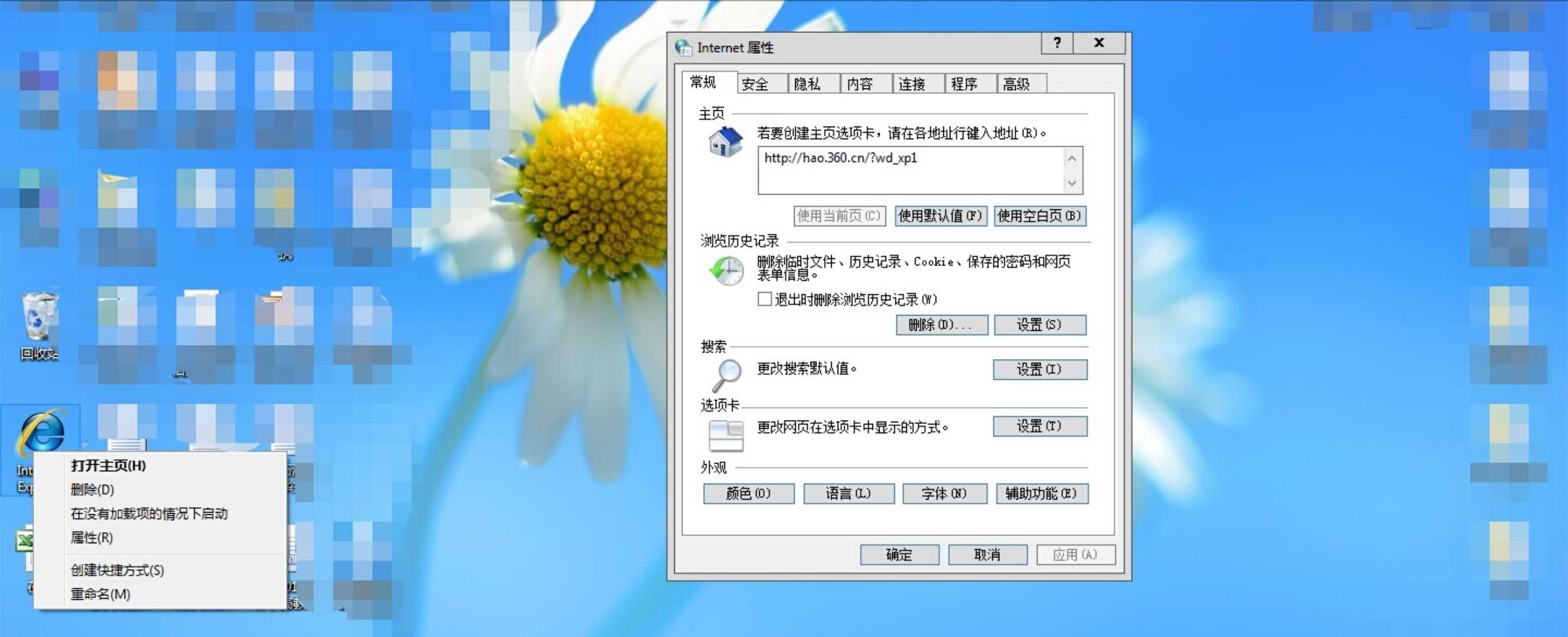 1、点击IE浏览器,鼠标右键,属性