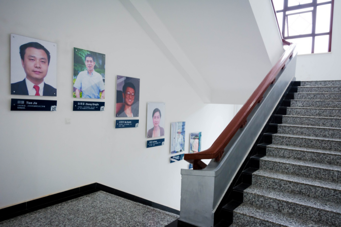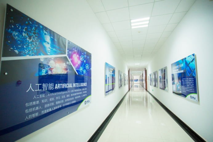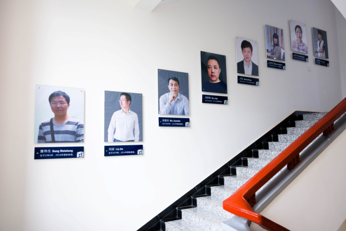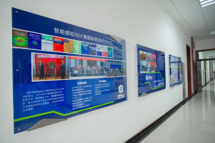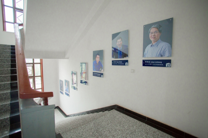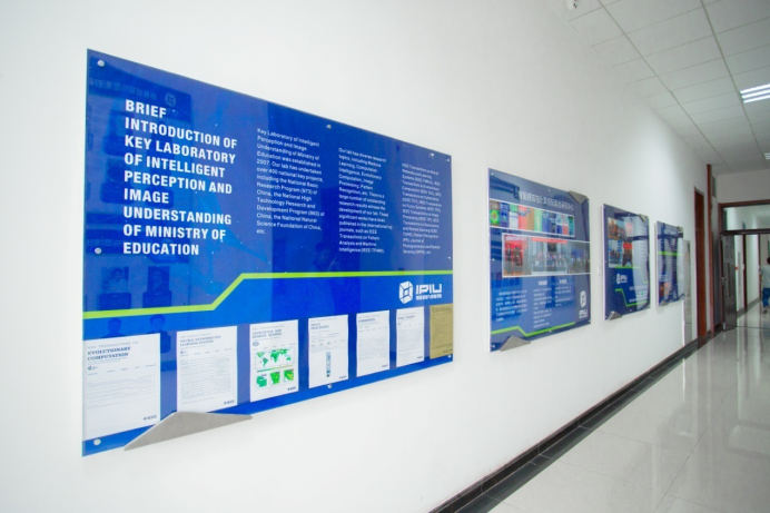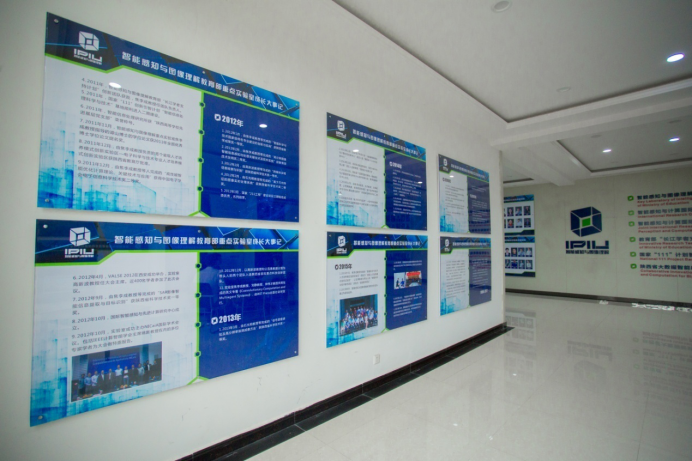 围绕着“厚德、求真、砺学、笃行”的校训,以培养出具有创新能力、实践能力以及钻研精神的学生为宗旨,兼顾环境建设、制度管理、学术交流、以身垂范等方方面面,重点实验室建立起了一整套立体的文化体系。实验室每一层楼都设置有科技感十足的文化墙,内容既涵盖人工智能学科发展又包括最新的国际科研热点事件及发展趋势:如类脑计算、深度学习、AlphaGo“人机大战”等,营造了浓厚的科研氛围。而实验室发展历程、科研队伍、科研成果等的展示则更直击人心的缔结起了师生与实验室的情感纽带,近五年间,实验室在人工智能领域崭获了三项国家自然科学奖,焦李成、高新波、公茂果教授连续三年入选计算机领域高被引学者榜单,形成了人工智能领域的西电特色!实验室卓越的科研成果让所有成员都倍感荣幸,强化了师生们的集体荣誉感和主人翁精神;从2楼拾级而上,是一面面教授墙,实验室教授们的风采在这里时时感召着大家,他们在人工智能领域中的学术经历也凝结着实验室的成长,看到他们,仿佛也看到了实验室一路走来夜以继日、奋发向上的历程;校友墙则铭刻了实验室学生们的青春,每一位从实验室毕业的学子都能在上面找到自己的名字,青青子衿,不悔求学时光;孙其功、杨少毅等杰出学生的事迹,“玲珑八面”、“鲁班七号”等由实验室学子组成的队伍在国内外各项人工智能竞赛中勇夺桂冠的消息则为同学们带来了榜样的力量,振奋着实验室学子们努力拼搏,后来居上。制度管理方面,重点实验室执行严格统一的安全与卫生规定,保证师生们能安全、有序的进行科研工作;在此基础上,各个实验室又能自由地根据自身用途和特点“量身定制”各自的管理方法,使得整个实验室严肃而又活泼,整洁而又温馨,和谐而又各有千秋。