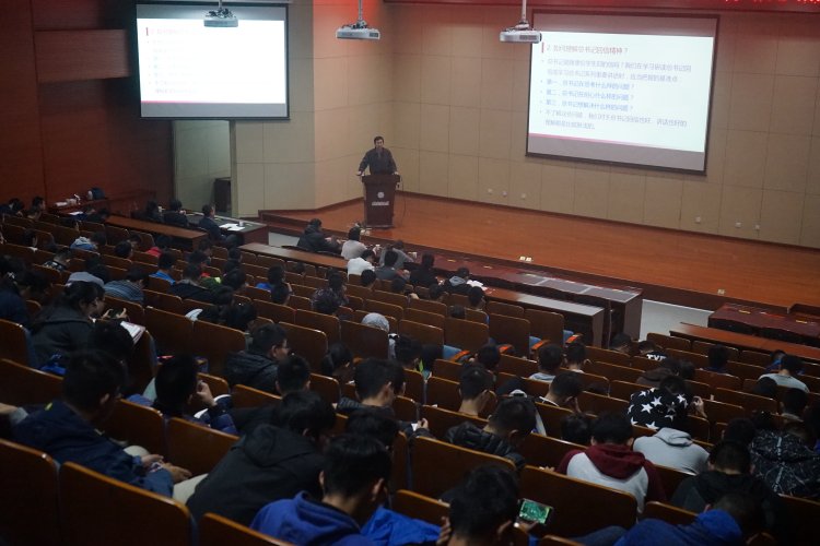 紧接着,夏永林教授向同学们剖析了回信中总书记对全体青年的四点期望,一是坚定理想信念,没有理想信念就会导致精神上“缺钙”,中国梦是全国各族人民的共同理想,也是青年一代应该牢固树立的远大理想;二是锤炼意志品质,青年大学生一定要练就过硬本领、勇于创新创造、矢志艰苦奋斗、锤炼高尚品格;三是扎根中国大地,广大青年和青年学生要接地气,响应党的号召,胸怀祖国和人民,奉献社会和他人,积极投身祖国最需要的地方;四是确立远大目标,青年大学生要志存高远,紧跟时代砥砺前行,担当责任奋发有为。