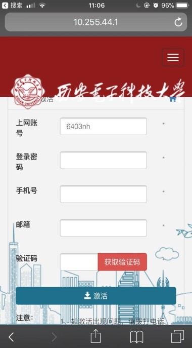 北校区硕士研究生关于无线登录页面激活账号的通知
