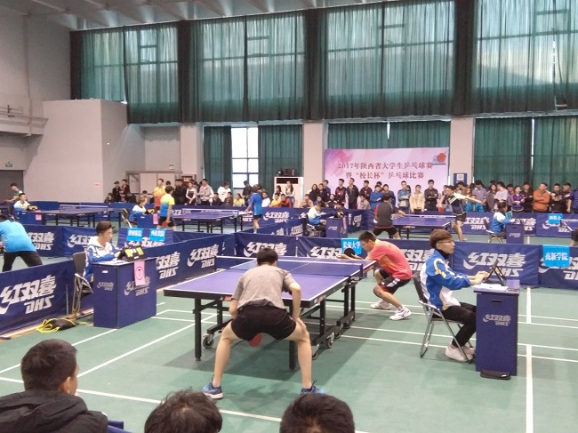 2017年11月7日至10日,由陕西省教育厅主办,陕西省学生体育协会、西安交通大学承办的2017年陕西省大学生乒乓球锦标赛暨“校长杯”乒乓球比赛在西安交通大学体育馆举行。本次比赛,共有来自西安交通大学、西北工业大学等陕西53所高校代表队的533名老师和运动员学生参加。本次比赛由体育部部长于少勇教授领队,詹歌老师任教练带领我校十二名学生参加男子女子团体及单项比赛,并在比赛中取得优异成绩。