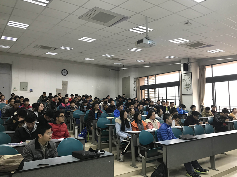 曹张杰学长首先分享了自己的学习和科研经验,他主要以在校时间为主线回顾了大学生活。曹张杰同学认为大学一年级是非常关键的阶段,万事开头难,一定要把握好学习的节奏,加强基础课程学习,积极自主的通过多种途径预先学习相关专业课程。在大学二年级,需要尽快明确自己将要成为什么类型的人,主动与老师联系快速找准自己具体的科研方向,通过多种途径学习知识,掌握一定的论文撰写基础,并尝试在导师和学长的帮助下撰写论文。同时,曹张杰同学在谈到这里时也指出成功并不是一蹴而就,唾手可得的,他也有过多次投稿和科学研究失败的惨痛教训,关键是你自己是如何理解和面对这些失败,他最终选择的是冷静分析,迎难而上。最后,曹张杰同学指出大一大二期间已经有了一定的知识积累和科研基础,此时就可以考虑学习其他方面的知识为更为长远的计划做准备了。在场的同学们为曹张杰同学周密的学习计划和坚忍毅力不时的报以热烈的掌声。