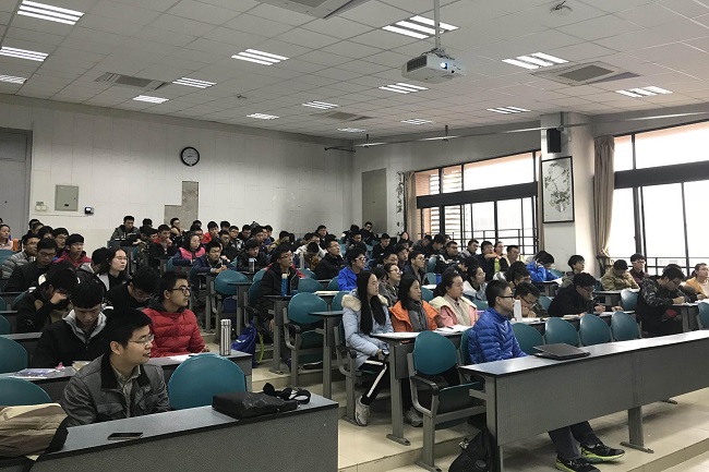 曹张杰首先分享了自己的学习和科研经验,他主要以在校时间为主线回顾了大学生活。曹张杰认为大学一年级是非常关键的阶段,万事开头难,一定要把握好学习的节奏,加强基础课程学习,积极自主的通过多种途径预先学习相关专业课程。在大学二年级,需要尽快明确自己将要成为什么类型的人,主动与老师联系快速找准自己具体的科研方向,通过多种途径学习知识,掌握一定的论文撰写基础,并尝试在导师和学长的帮助下撰写论文。同时,曹张杰在谈到这里时也指出成功并不是一蹴而就,唾手可得的,他也有过多次投稿和科学研究失败的惨痛教训,关键是你自己是如何理解和面对这些失败,他最终选择的是冷静分析,迎难而上。最后,曹张杰指出大一大二期间已经有了一定的知识积累和科研基础,此时就可以考虑学习其他方面的知识为更为长远的计划做准备了。在场的同学们为曹张杰同学周密的学习计划和坚忍毅力不时的报以热烈的掌声。
