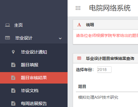 2014级本科毕业设计题目(简介)专家已经审核完毕,请各位出题导师登录威尼斯系统(dyxt.xidian.edu.cn),点击毕业设计-题目审核结果查看专家意见。