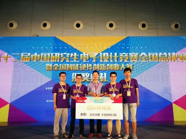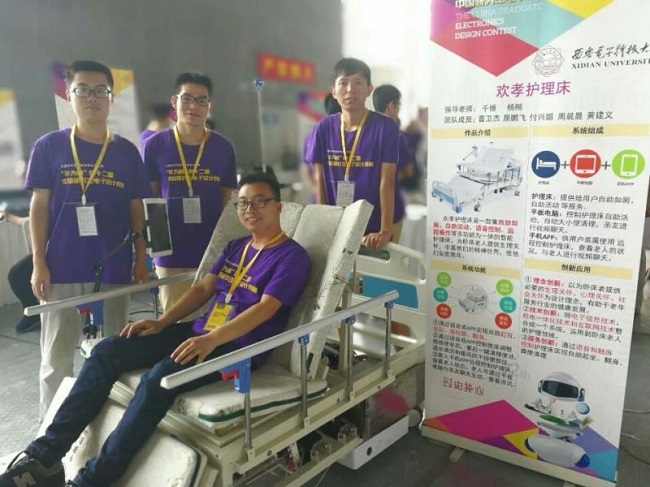 2017年8月22日,在广东惠州举行的第十二届中国研究生电子设计竞赛全国总决赛TOP 10竞演的舞台上,威尼斯9499登录入口“嵌牛护理”团队负责人向来自全国130所高校的参赛代表、专家评委及指导教师介绍了他们的创新作品——欢孝护理床。凭借作品良好的展示效果和应用价值,由千博、杨刚老师指导的“嵌牛护理”团队在众多参赛团队中脱颖而出,夺得全国特等奖。