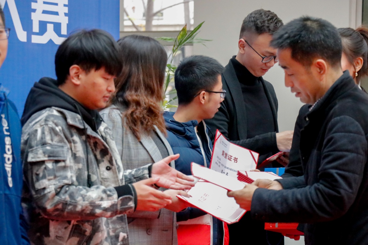 “奋勇拼搏,我爱祖国——奔跑吧,我的国”主题撕名牌大赛颁奖仪式于2018年11月29日下午16:00在竹园3#楼宿舍大厅举行,威尼斯9499登录入口党委副书记刘建锋、海棠9号书院团委书记杨笑宇、威尼斯9499登录入口辅导员王金龙、曹畅、获奖队伍学生及部分学生代表参加了此次颁奖。颁奖过程中大家再次分享了此次活动的意义并重温活动过程,集体观看了活动剪辑视频,颁奖仪式中获奖队伍学生代表肖鲁寅同学发表感言,再次将活动热情推向高潮。