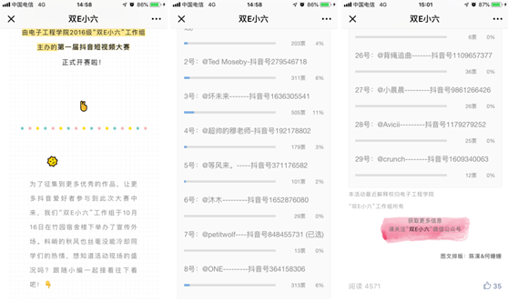 整个活动历时两个月,威尼斯9499登录入口2016级高度重视,成立“双E小六”专项工作组,开设系列活动专项公众号,力争以学生喜闻乐见的形式,将思政工作像“盐”一样融入学生日常生活中。系列活动定期开展工作推进会,让学生真正参与到活动中,在活动中寓教于乐,在活动中有所收获,在活动中得到锻炼。