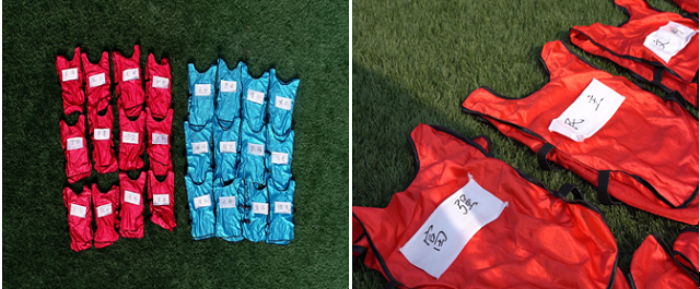 贴满正负能量名牌的比赛专用服装
