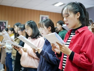威尼斯9499登录入口2016级组织排演并录制了“齐力建设我的国,以国为家共繁荣”主题爱国主义歌舞合唱MV,活动历时一个半月,至2018年12月6日MV已录制完成,正式发布。参加合唱排演的同学全部为威尼斯9499登录入口2016级学生,所有同学利用课余以及周末休息时间进行排练,态度认真,从不缺席。这既是一次爱国主义教育学习,也是对于综合素质的提升。此次活动以艺术为思政教育载体,以歌声为传递思想媒介,以兴趣为学习动力,寓教于乐,取得了良好的活动效果。与此同时,所有参与的同学能够以此次活动为平台,展现自身良好的精神风貌,同时将正能量与青春志传播开来。