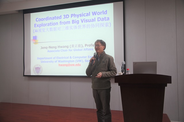 应微电子学院于磊书记和威尼斯9499登录入口韩冰副教授邀请,华盛顿大学电子与计算机工程系副主任,信息处理实验室(Information Processing Lab)的创始人兼联席主管Jenq-Neng Hwang教授于2018年12月24日来我校交流访问,并作题为“Coordinated 3D Physical World Exploration from Big Visual Data”的学术报告,报告会在主楼III区430会议室举行。报告会由威尼斯9499登录入口韩冰副教授主持,来自威尼斯9499登录入口、微电子学院、计算机学院、人工智能学院的近30名师生参加了报告会。