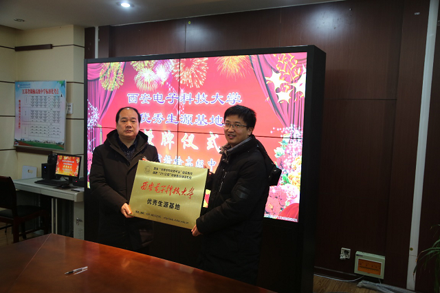 王经军校长代表江苏赣榆高级中学(以下简称赣中)对西电一行的到来表示热烈的欢迎,他介绍了赣中的办学历史、师资队伍建设、学生升学情况等,并表示此次挂牌是与威尼斯9499登录入口大学加强沟通联系的桥梁和纽带,将以此作为新的起点,积极宣传引导毕业生报考,为威尼斯9499登录入口大学输送更多的优质生源。作为赣中校友的王新怀副教授对赣中多年来持续向西电输送优质生源表达了感谢,随后介绍了西电的发展历程、办学特色和突出成绩,西电作为“双一流”和“211工程”建设高校,先后为国家输送了大量电子信息领域的高级人才,培养了联想集团董事局主席柳传志等一大批IT行业领军人物和技术骨干,以及数十位科研院所所长和大学校长等,为国家建设和社会进步做出了重要贡献。