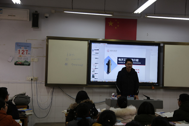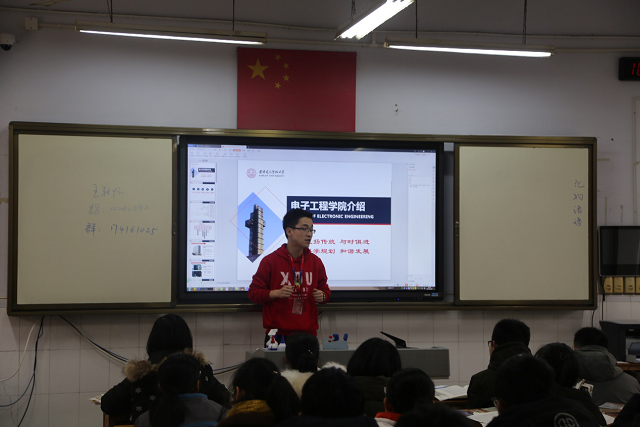 在高三年级主任郭新河老师安排和帮助下,招生宣传小组面向高三年级学生,逐班进行讲座交流,围绕“逐梦起航、相约西电”主题,杨楠向大家介绍学校总体情况,王新怀介绍威尼斯9499登录入口以及竞赛情况,同是赣中校友的威尼斯9499登录入口1502014班班长李昕,现身说法介绍西电各方面优越的环境氛围和良好的就业情况等,并建立了相关QQ交流群等以方便进一步交流。我校老师同学们与学子们的亲密互动,更加激发了现场学子对报考西电的向往,达到了良好的招生宣传效果。