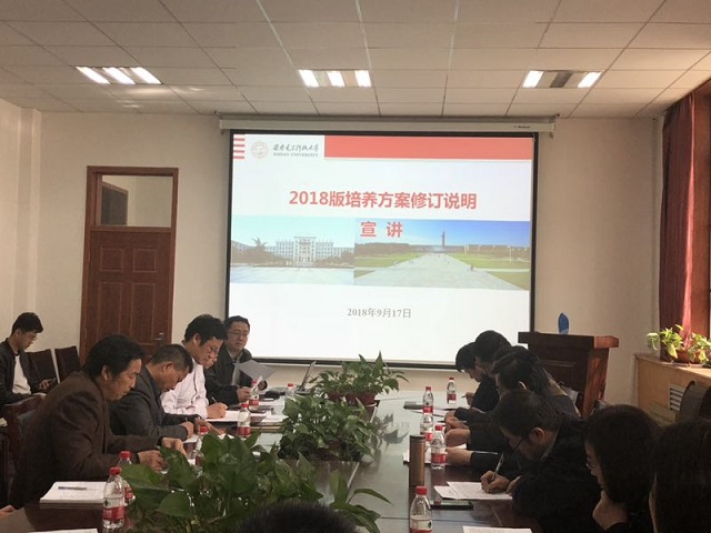 苏涛向参会人员就年度指标任务制定过程进行了解释说明,并从为什么改、怎么改、改成什么样等几个角度出发,就学校2018版本科培养方案修订工作进行了解读。