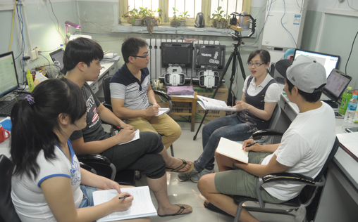 2015年6月29日,来自韩国成均馆大学(SKKU)的三位研究生与威尼斯9499登录入口西电媒体实验室3D图像处理项目组成员于北校区主楼III-107展开了为期三周的学习交流。上图中(由近及远)左一为SKKU硕士研究生夫碩焄(Sukhoon Boo),右一为SKKU硕士研究生權炳賢(Byunghyun Kwon),左二为西电硕士研究生曹丽惠,右二为SKKU博士研究生尹仁龍(Inyong Yun),左三为西电硕士研究生蔡济济,右三为西电硕士研究生陈旭凤。